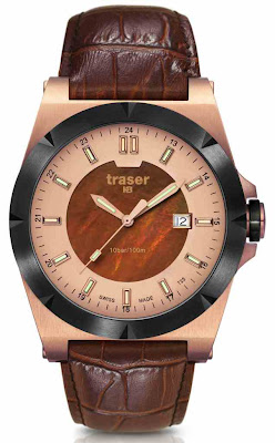 H3 Lady Sporty 3 Zeiger Technische Details: Uhrwerk: (Schweizer) Ronda 715 Quarz Gehäuse: Gehäuse in Roségoldplateau Lünette: Lünette aus vergoldetem Stahl Glas : Saphir Wasserdicht: 330 ft / 145 psi Durchmesser: 44 mm Zifferblattfarbe: Braun Perlmuttzifferblatt mit rosévergoldeter zweiter Scheibe